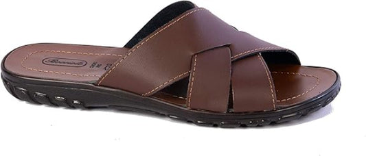 Bocciolo Ciabatte Uomo Aperte Incrociate Classiche Vera Pelle Made in Italy Plantare Cuoio