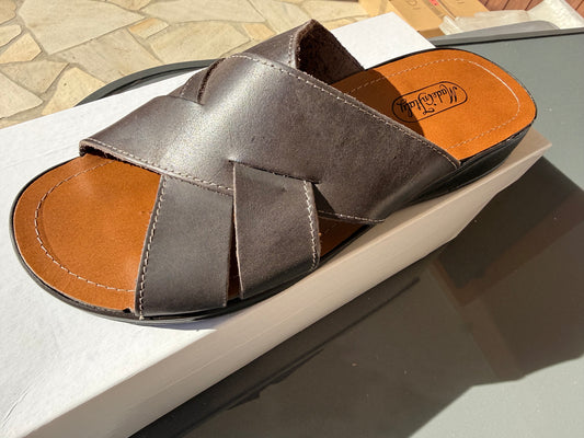 Bocciolo Ciabatte Uomo Aperte Incrociate Classiche Vera Pelle Made in Italy Plantare Cuoio