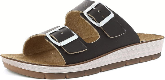 inblu Ciabatte Donna a Fascia con Doppia Fibbia e Plantare in Vera Pelle Sandali